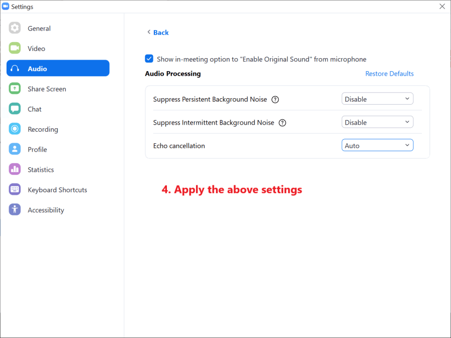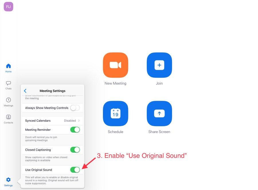 Zoom was designed with large video conferences in mind. It’s amazing that you can host a 400 person conference and have everybody be heard. That being said, some of the default settings in Zoom use a few features that we, during a piano lesson, don’t want to use. Luckily, Zoom has made it easy to Enable Original Sound which will give us the clearest sound of the piano!