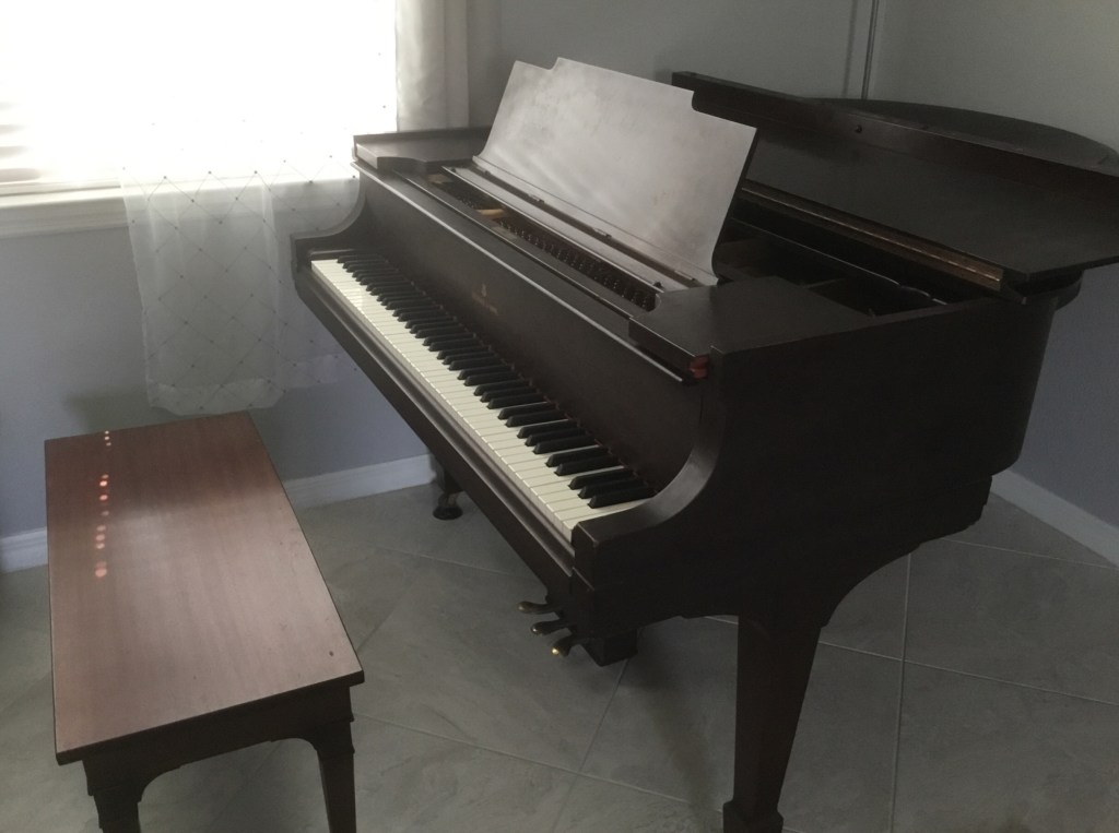 You can accomplish this by using a stool or a tall table next to the piano. Of course if you are using a laptop, it’s fairly easy to adjust the screen and point it downward. If you’re using an iPad, it might be a bit trickier, but you just have to experiment!